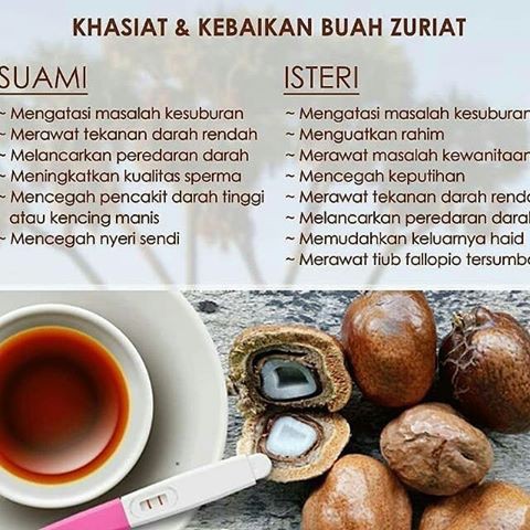 Buah Zuriat dipercaya bisa menjadi salah satu upaya di program hamil promil. Rendam buah zuriat kedalam air bersih selama 3 hingga 5 menit. Buah ini biasa dijadikan oleh-oleh bagi.